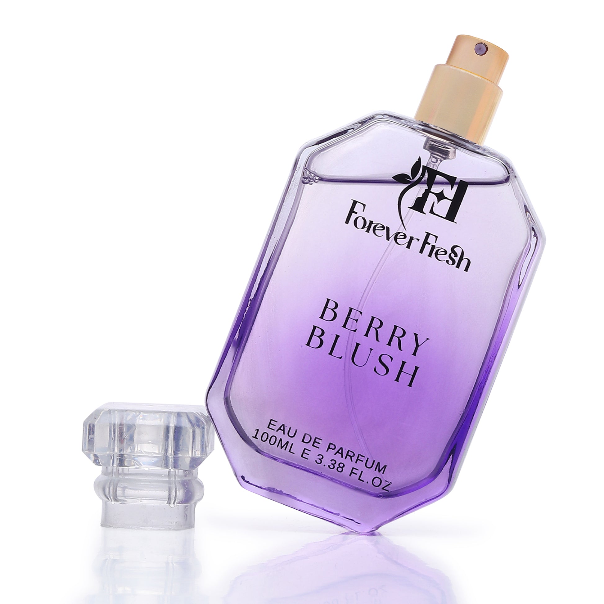 Forever Fresh Berry Blush is a radiant Eau de Parfum that opens with the luscious sweetness of ripe berries and sparkling citrus, capturing the lightness of laughter and the warmth of happiness. As it unfolds, a soft bouquet of florals and tender rose petals blooms at its heart, finally resting on a sensual base of white musk, creamy vanilla, and warm woods.